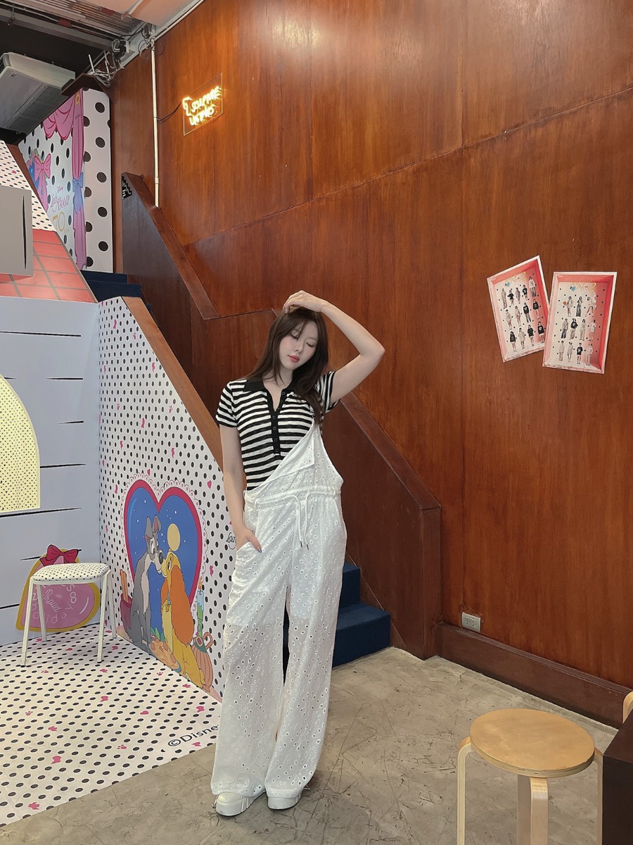 ลักษณะ : เอี๊ยมโอเวอร์ไซส์ขายาวผ้าลูกไม้