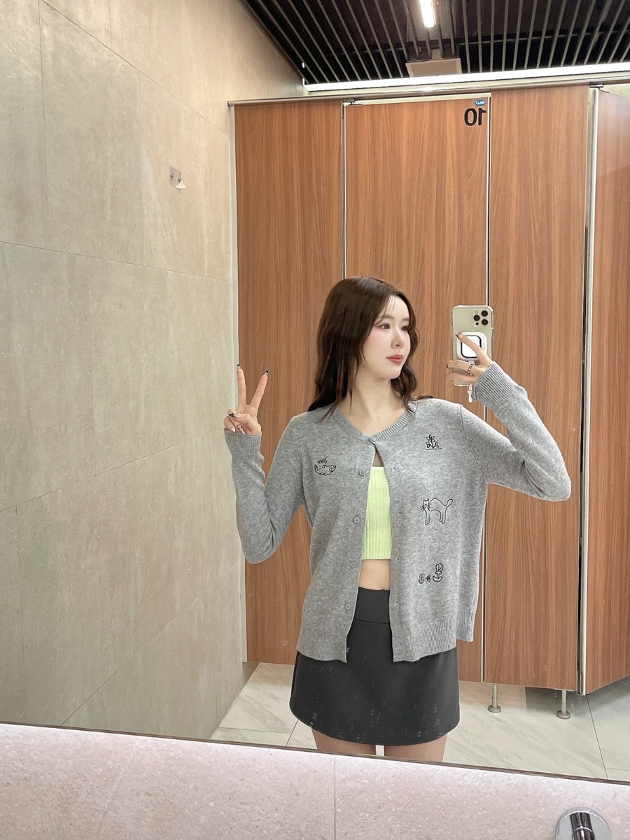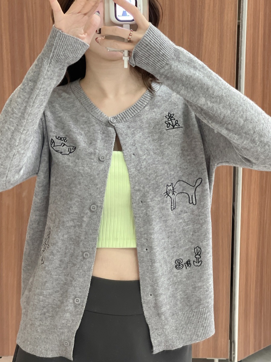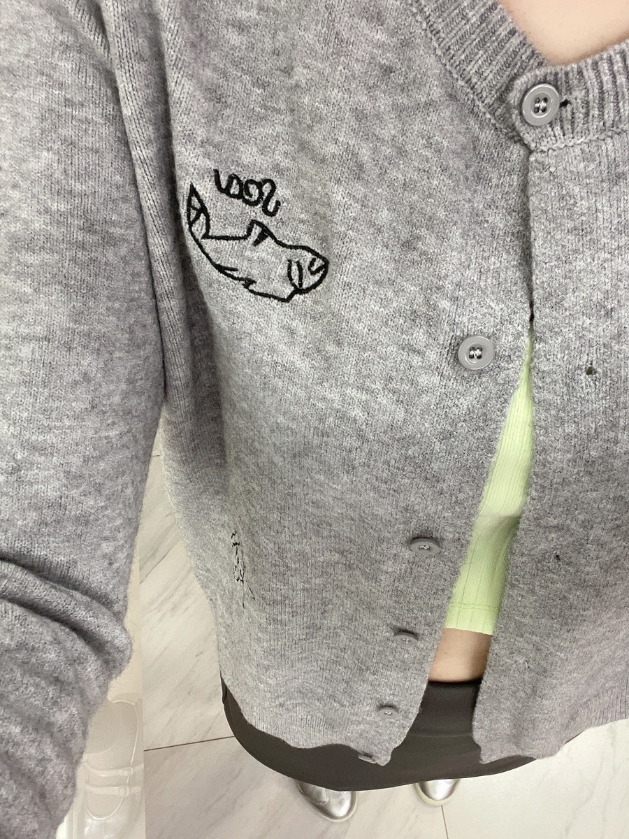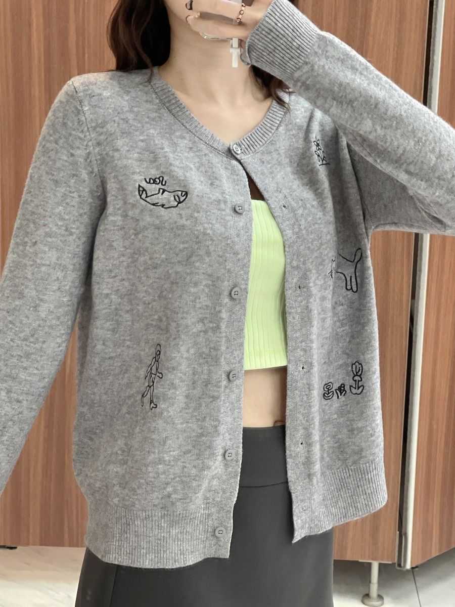 เสื้อคาร์ดิแกนแขนยาวกระดุมหน้าปักลาย