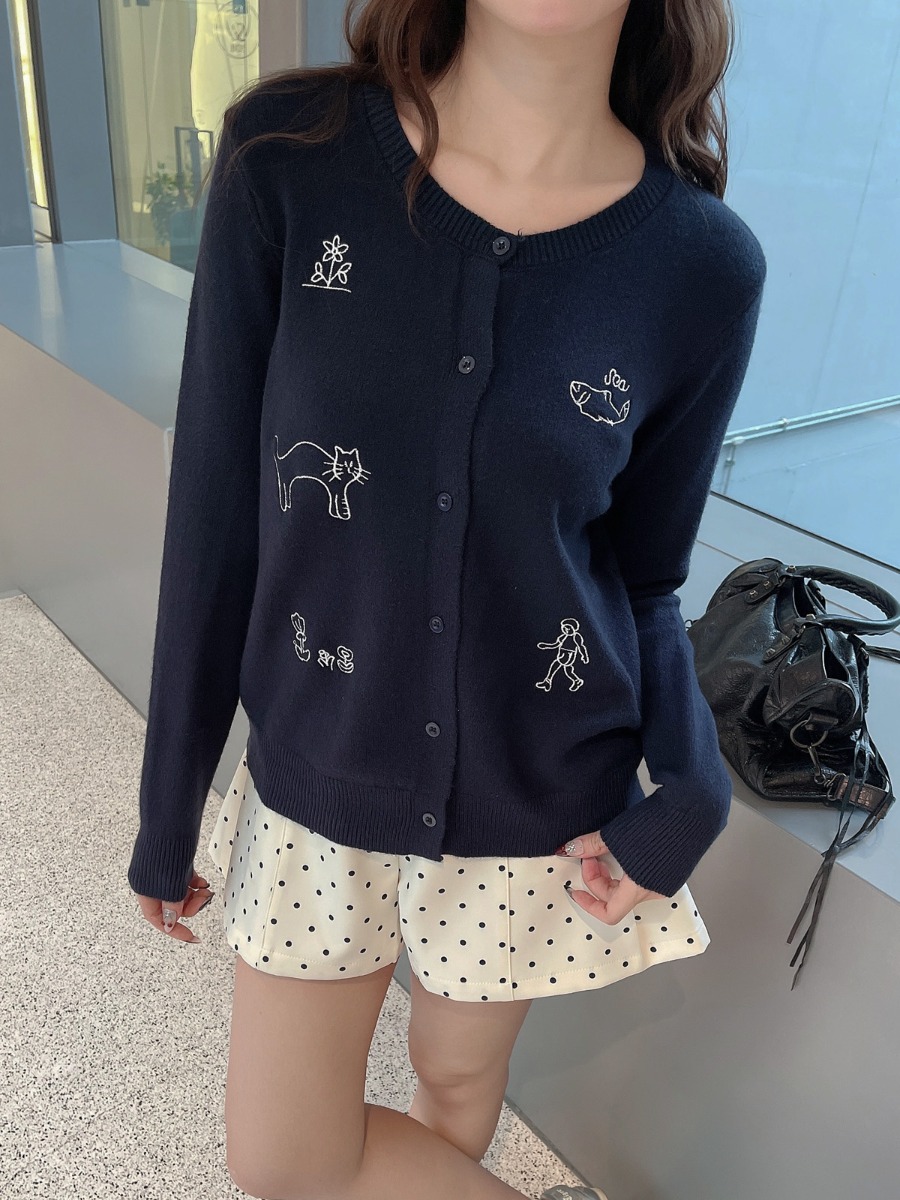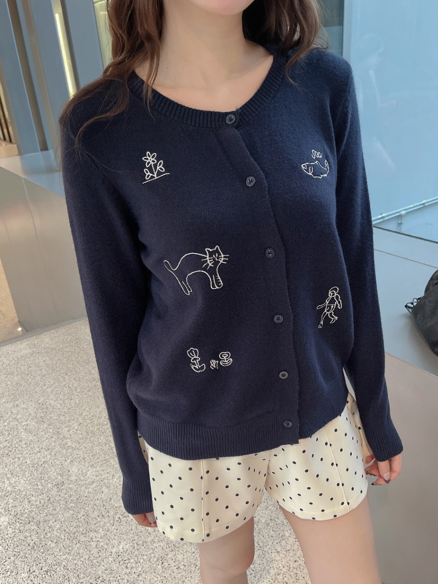 เสื้อคาร์ดิแกนแขนยาวกระดุมหน้าปักลาย