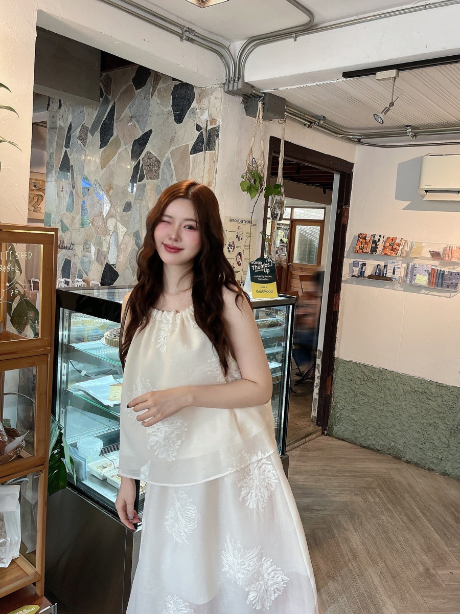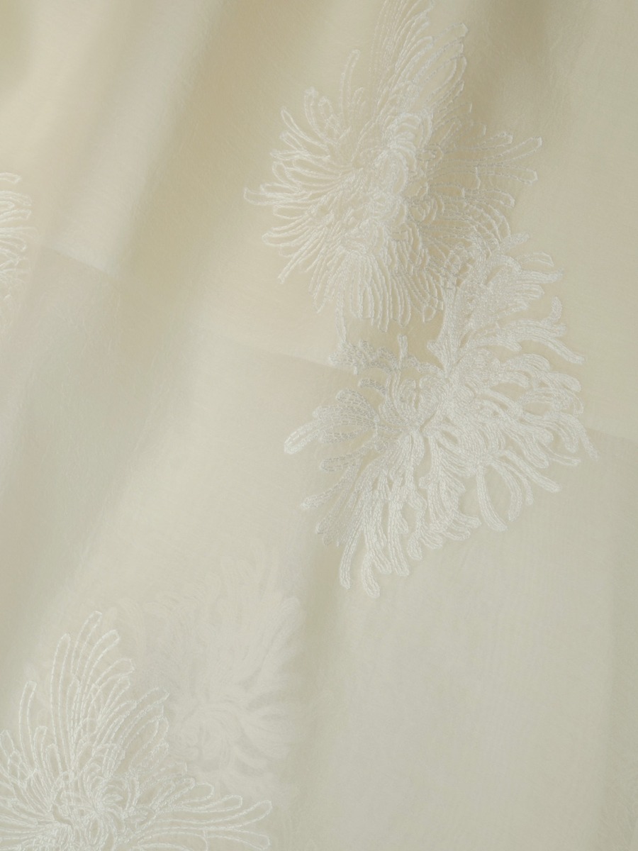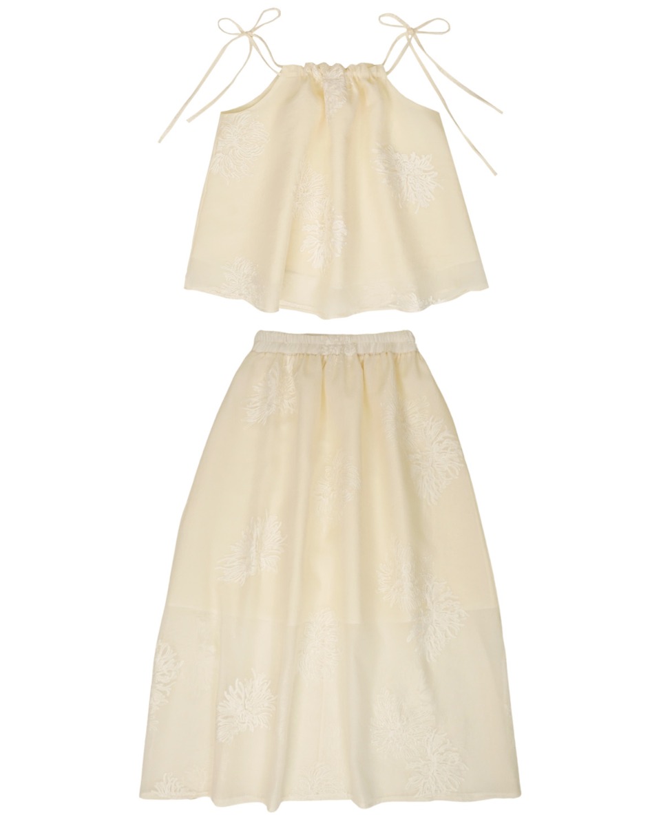 CHRYSAN EMBROIDERY TOP & SKIRT ORGANDY SET-CREAM