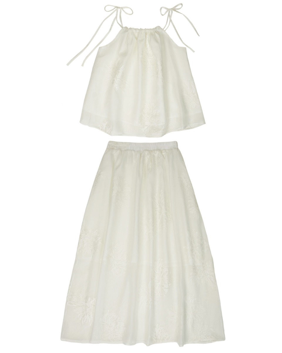 CHRYSAN EMBROIDERY TOP & SKIRT ORGANDY SET