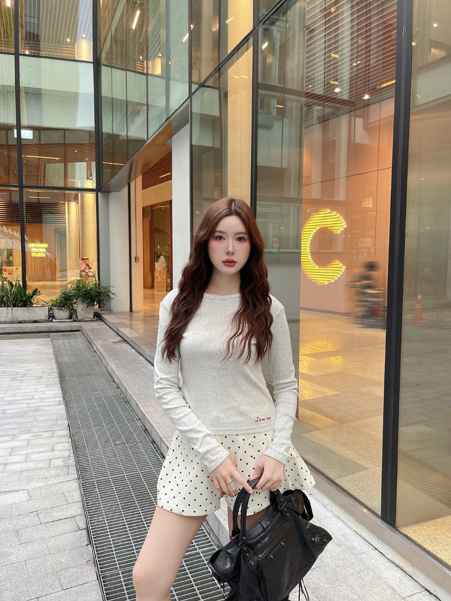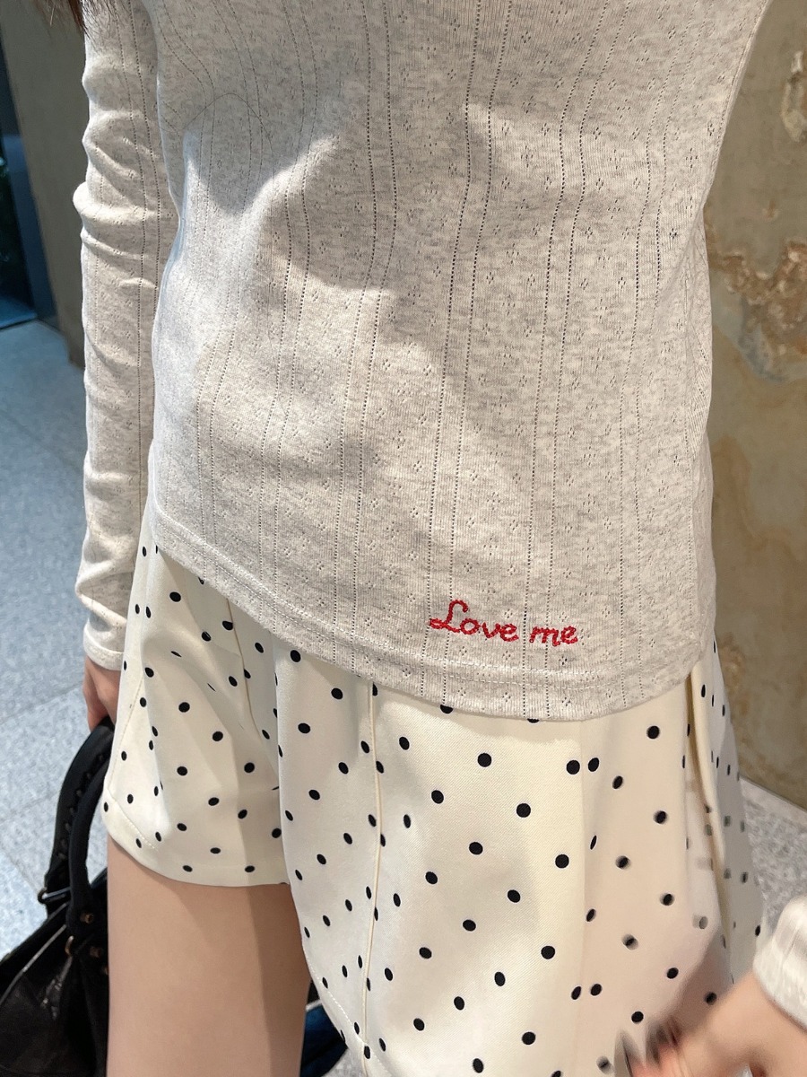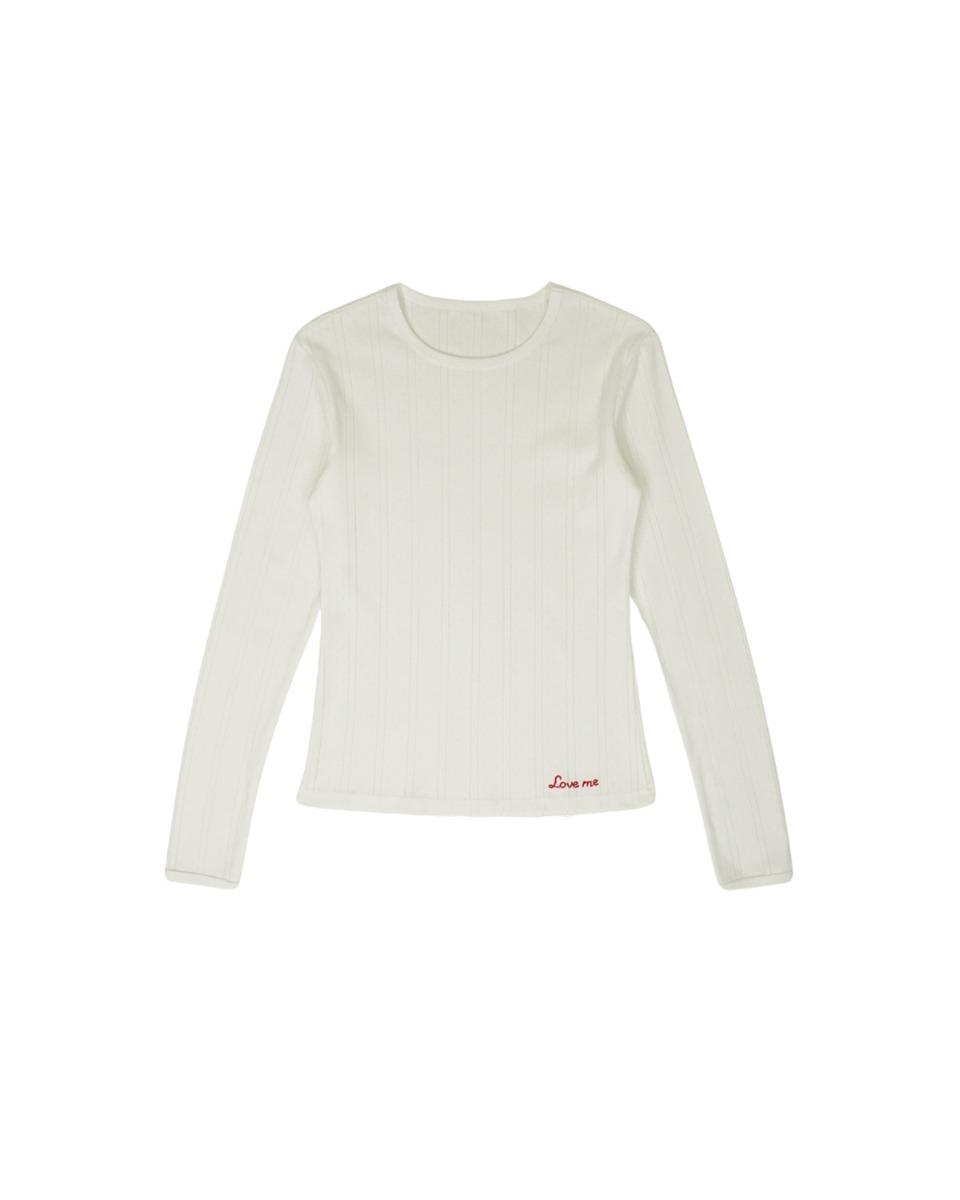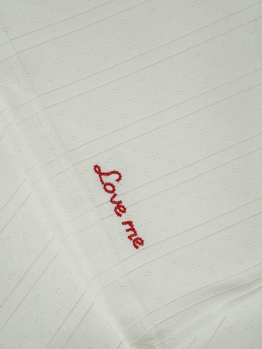 เสื้อแขนยาวผ้ายืดทอฉลุ ปักลาย Love me