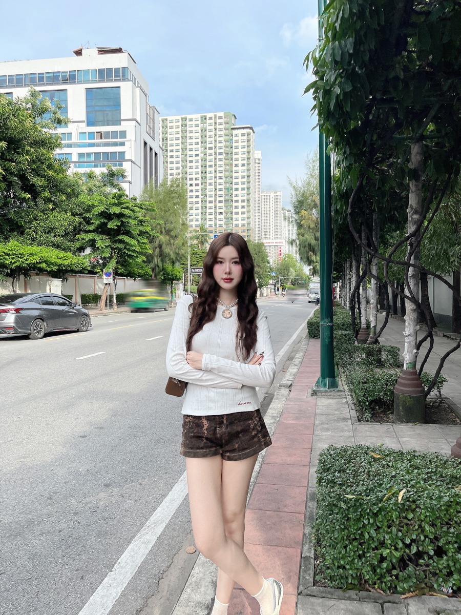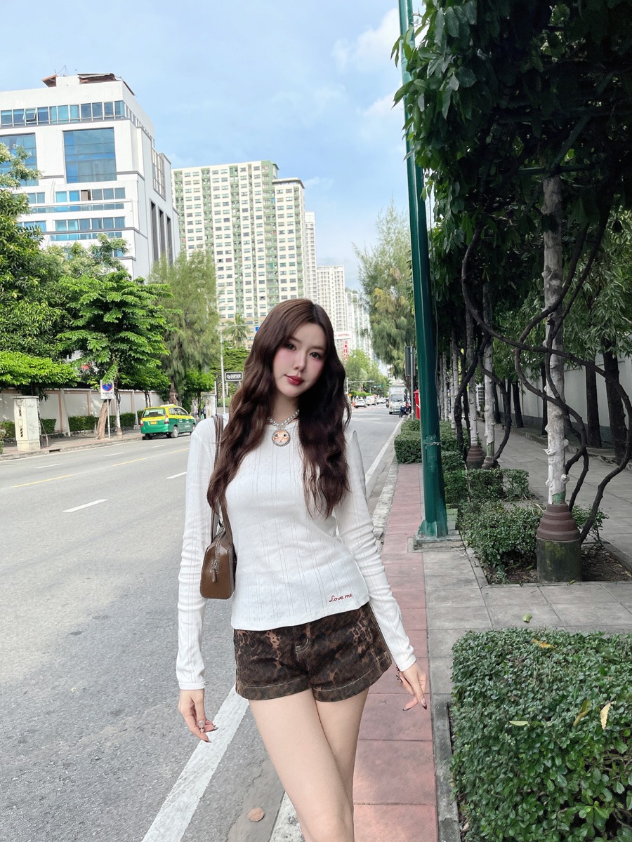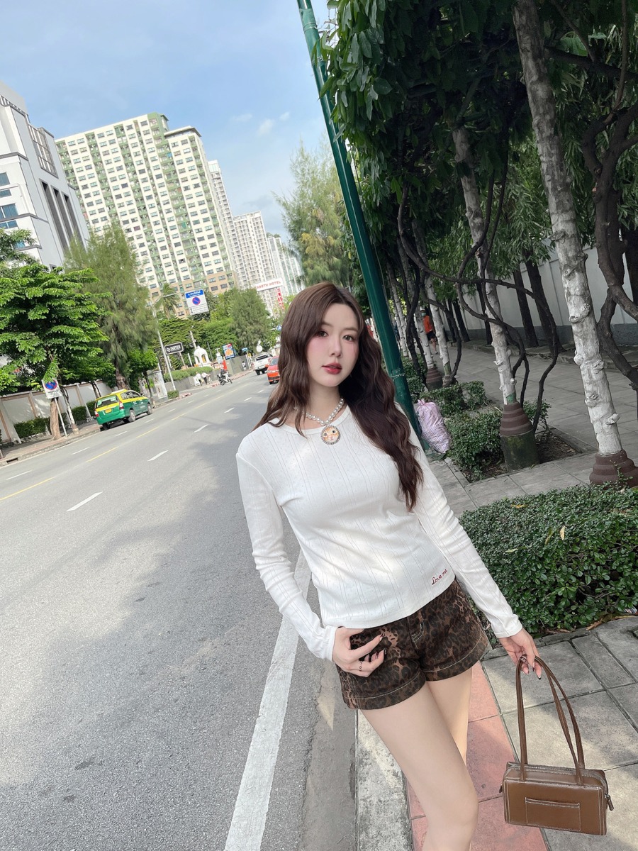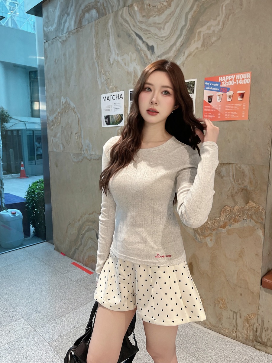 เสื้อแขนยาวผ้ายืดทอฉลุ ปักลาย Love me