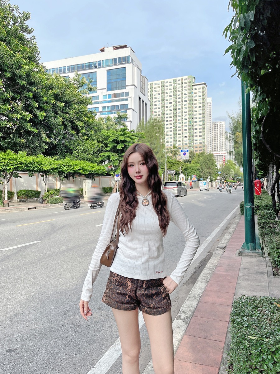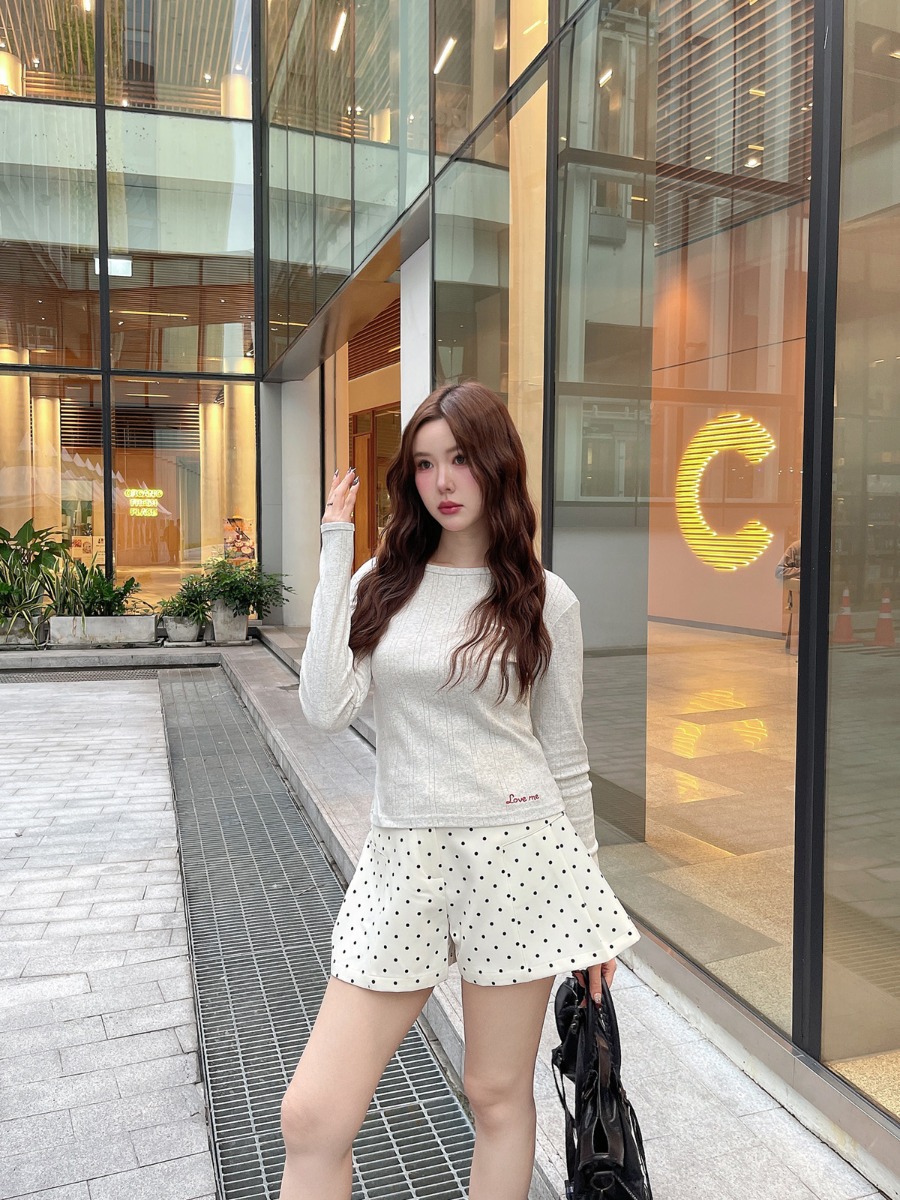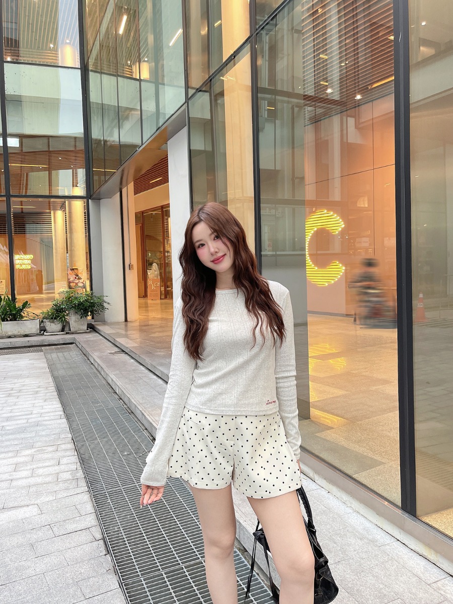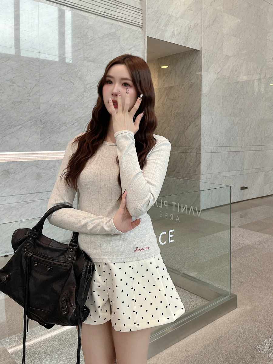 เสื้อแขนยาวผ้ายืดทอฉลุ ปักลาย Love me