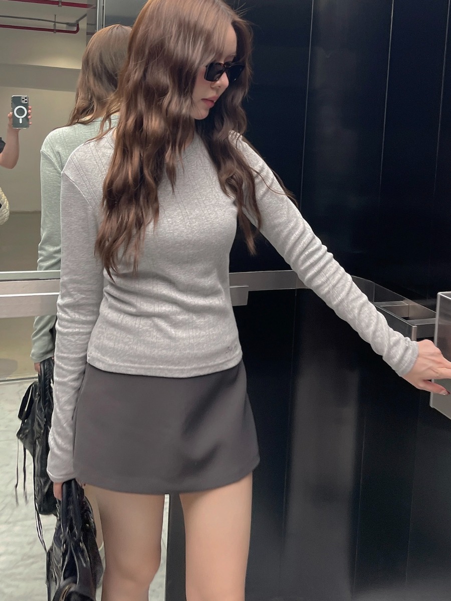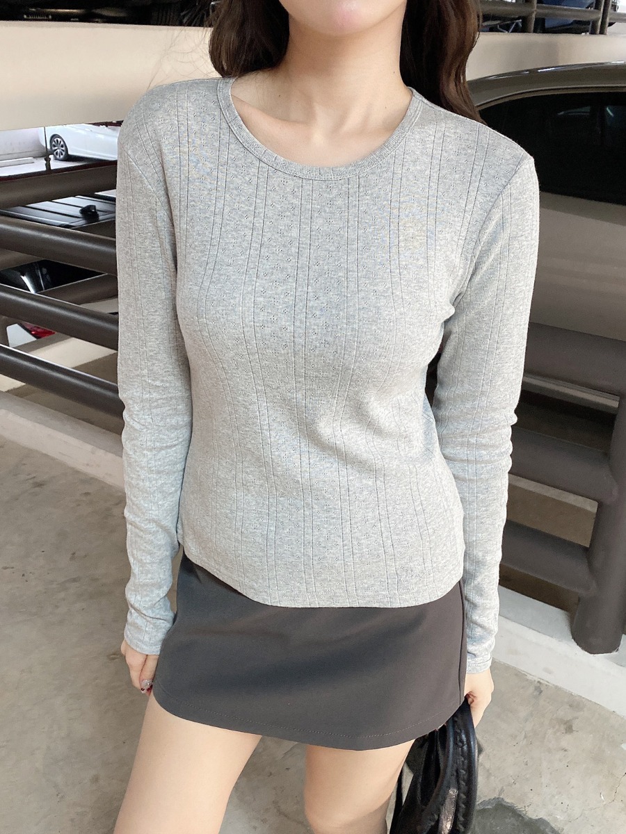 เสื้อแขนยาวผ้ายืดทอฉลุ ปักลายที่ชายเสื้อ
