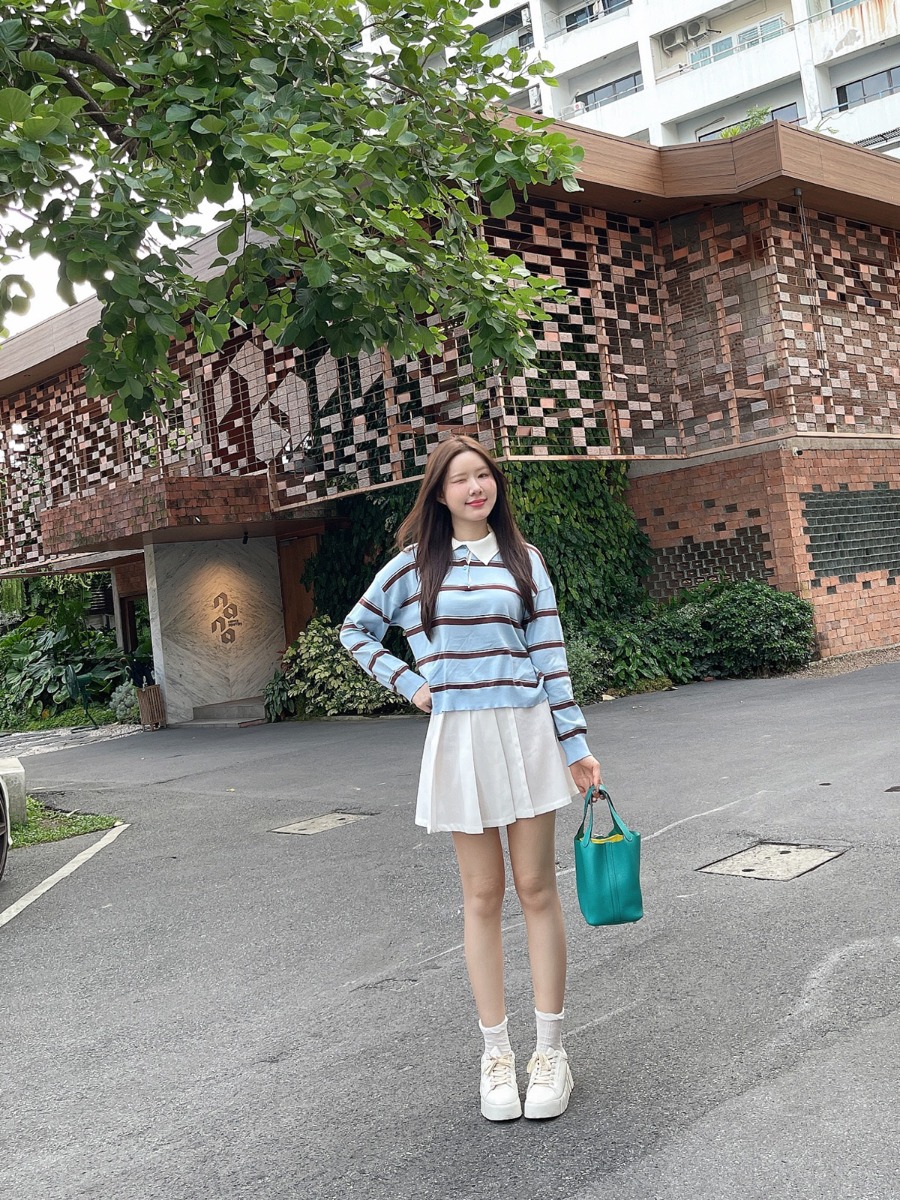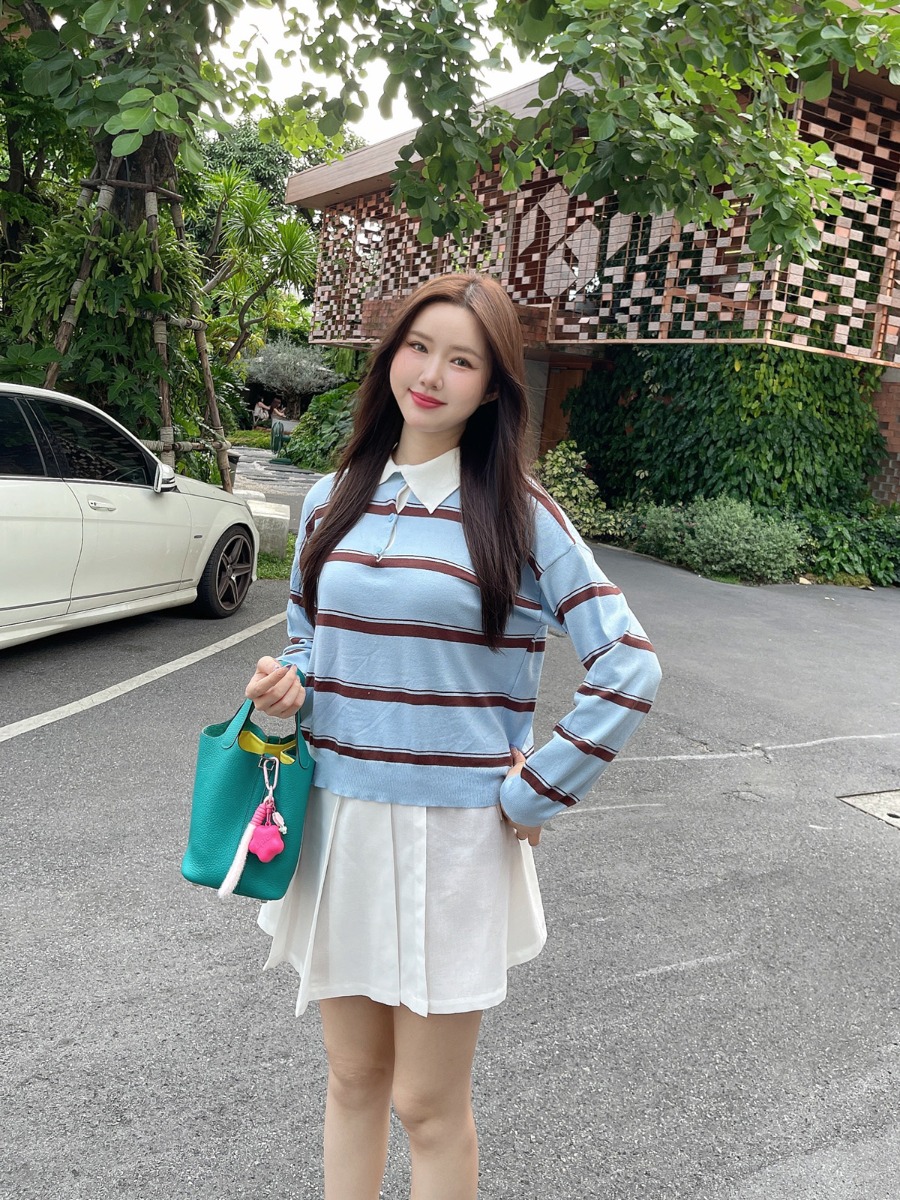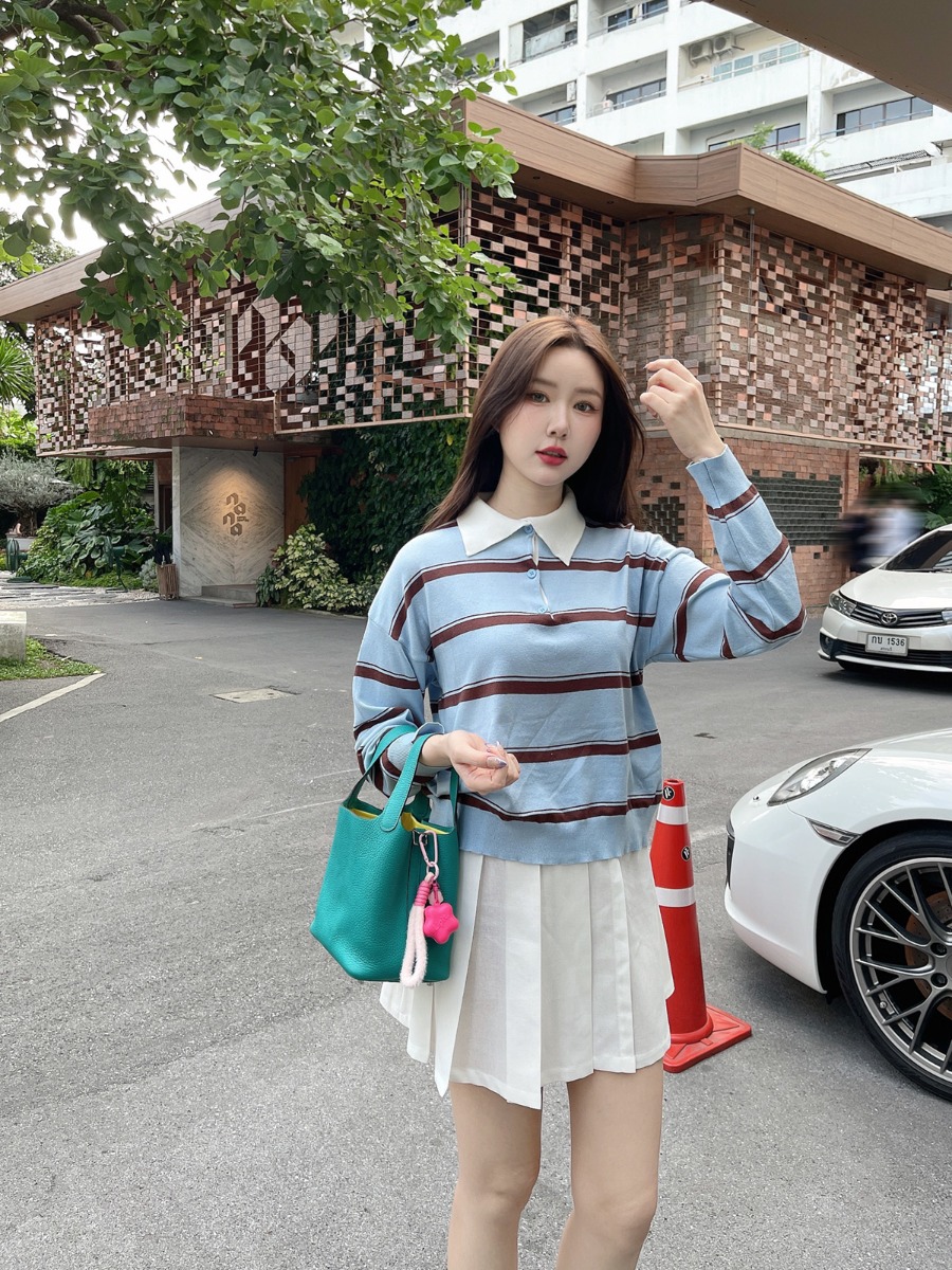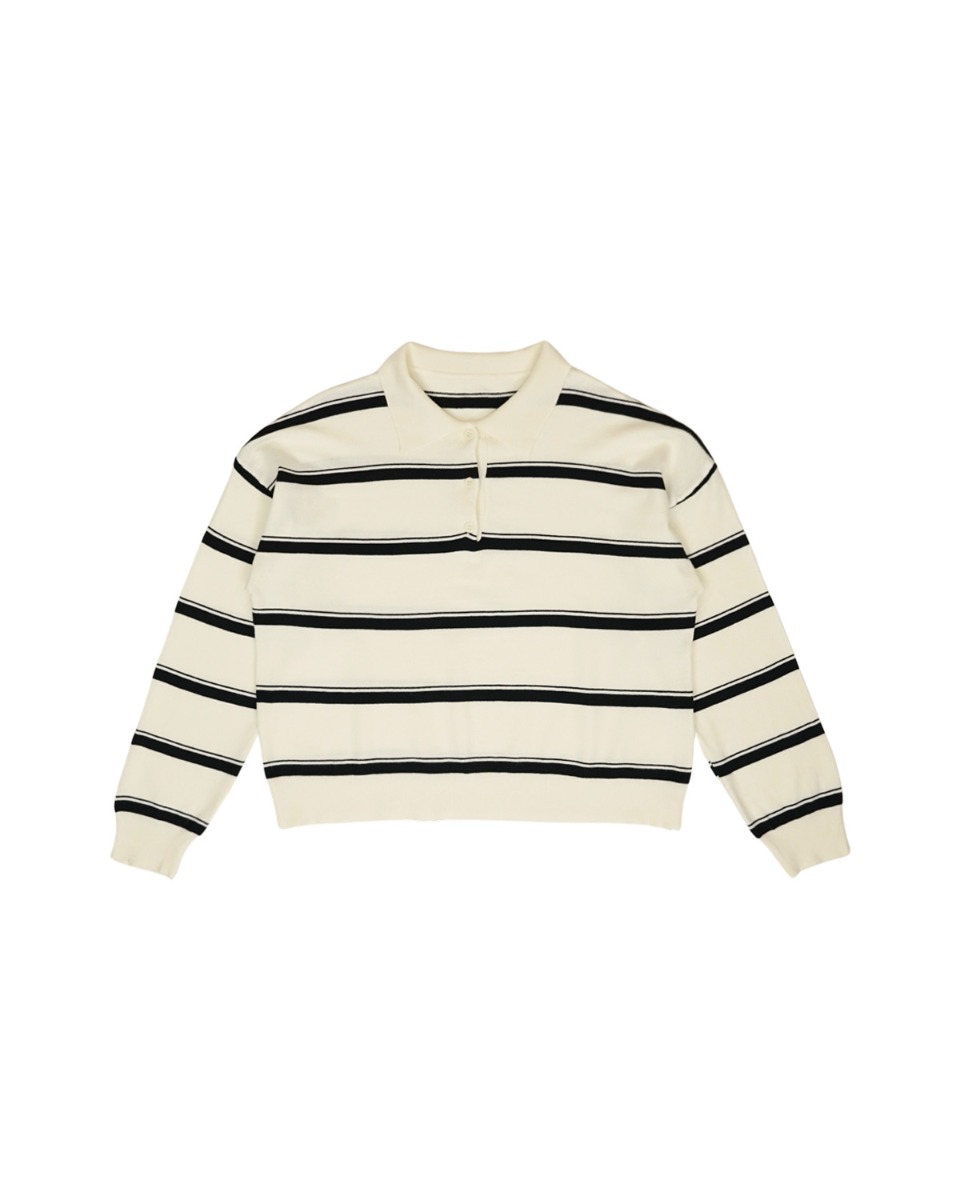 เสื้อโปโลไหมพรมแขนยาวลายขวาง