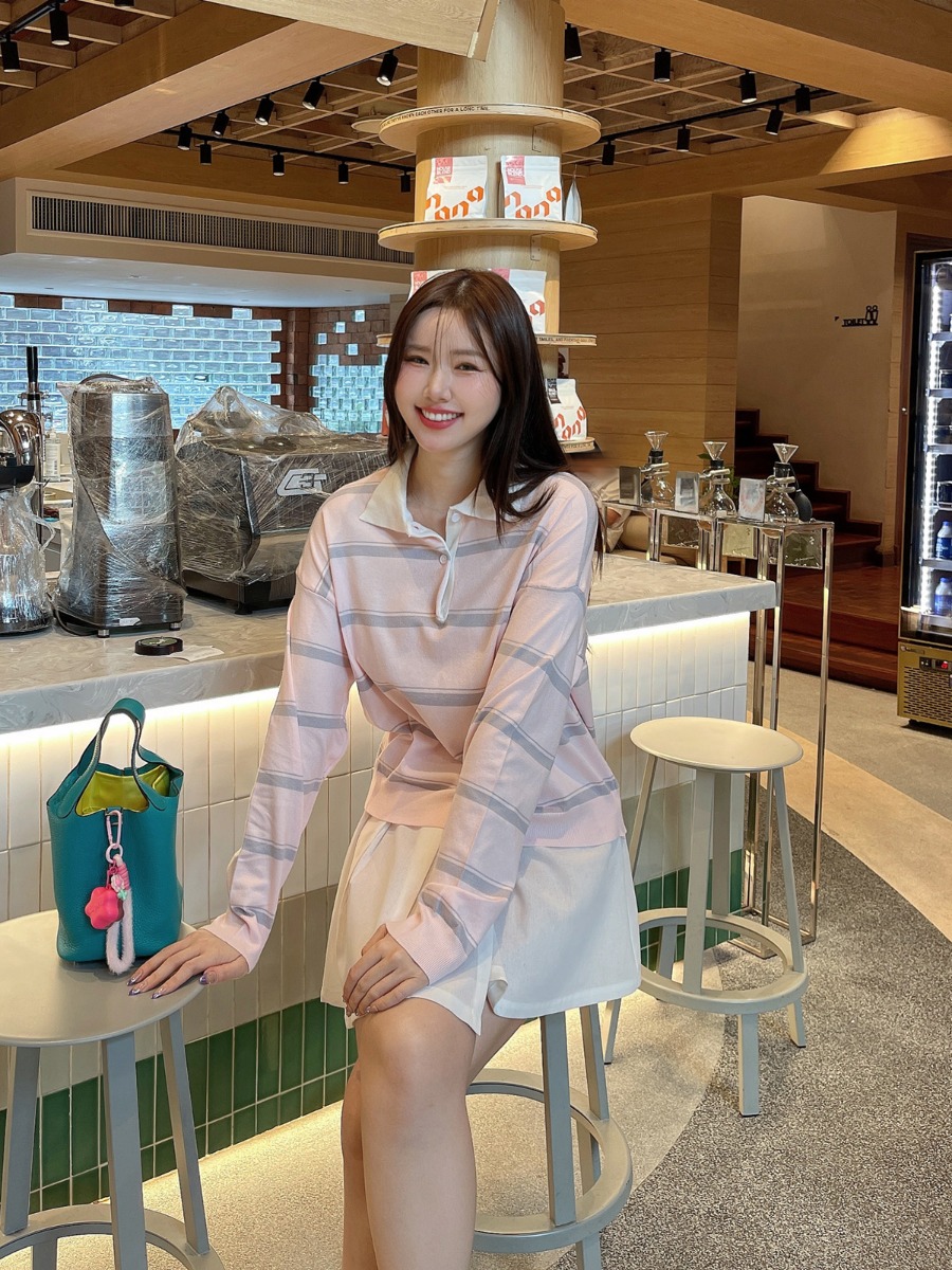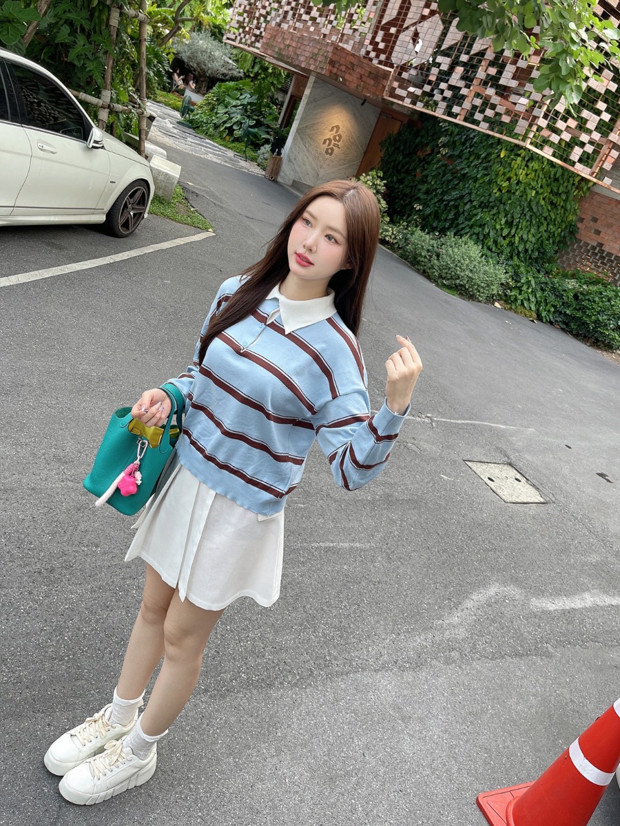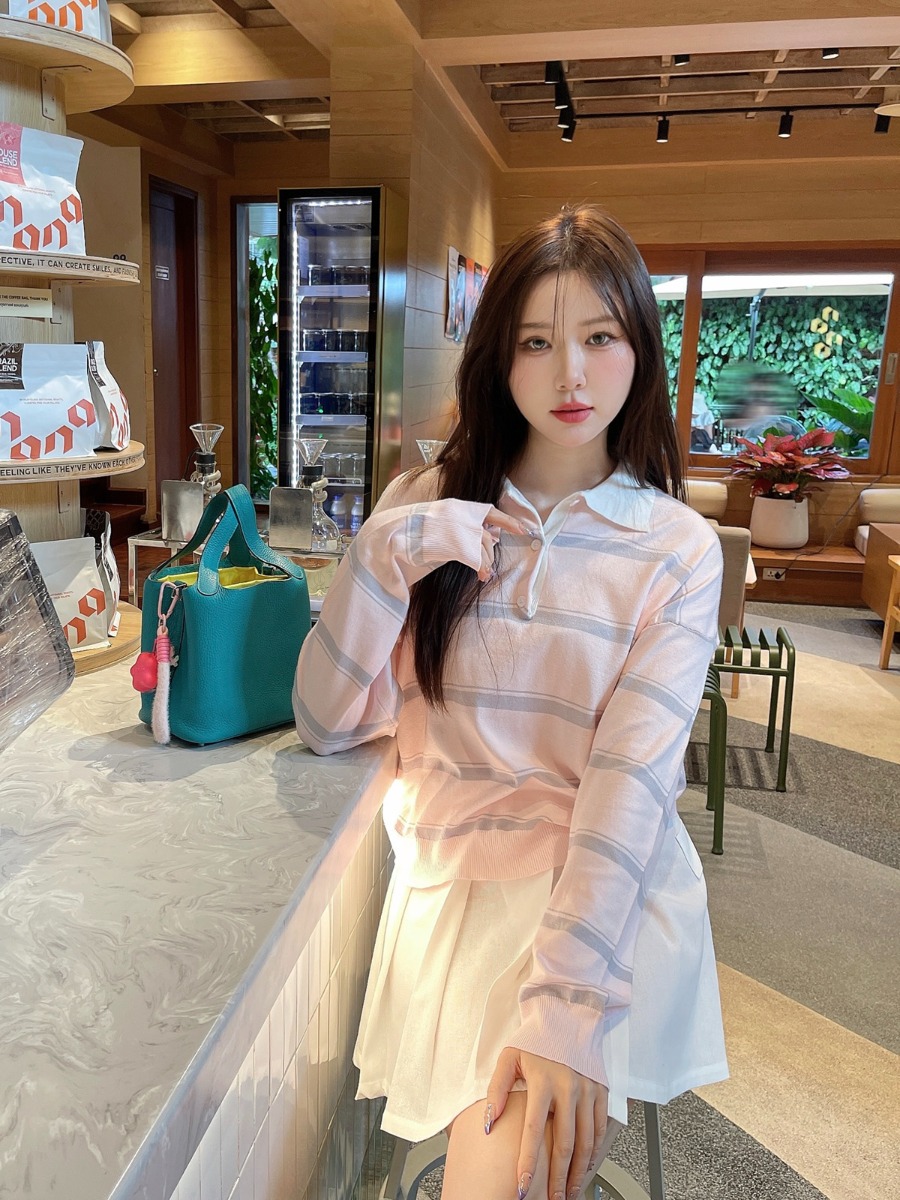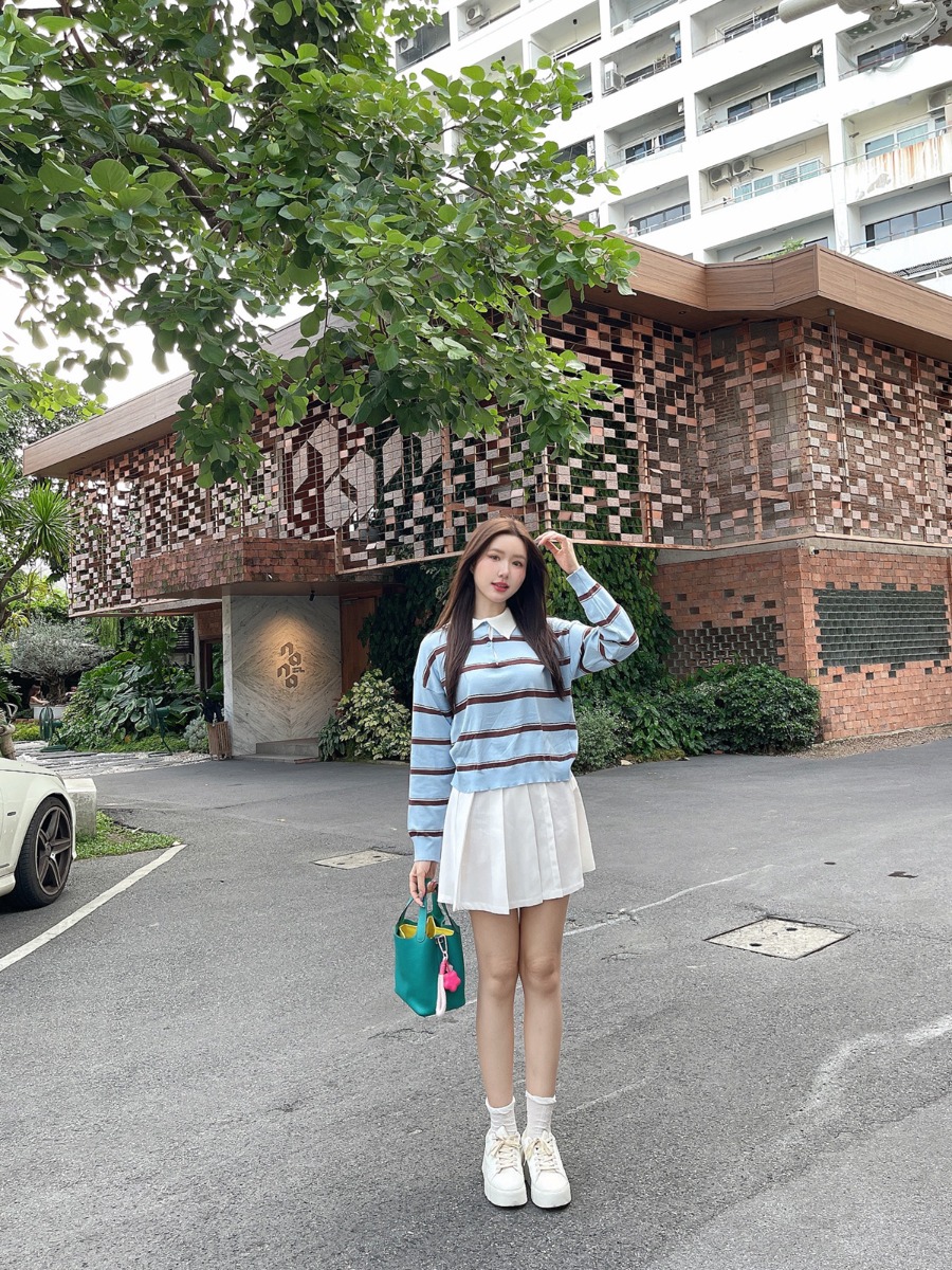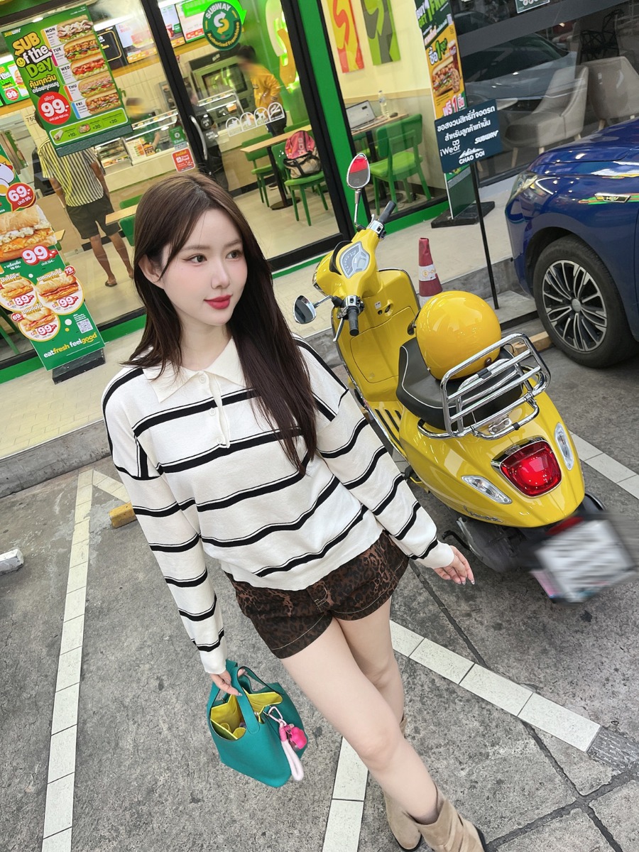 เสื้อโปโลไหมพรมแขนยาวลายขวาง