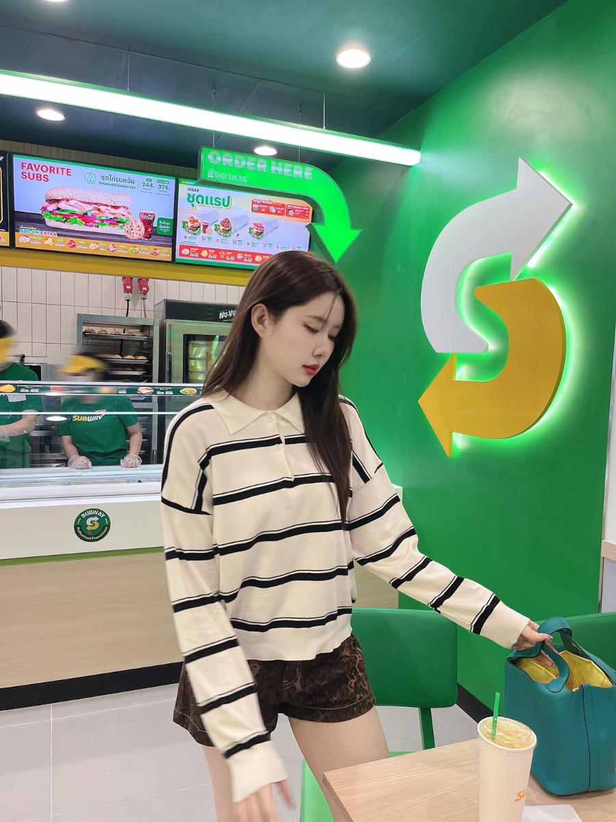 ลักษณะ : เสื้อโปโลแขนยาวลายขวาง
